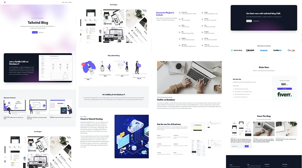 A new design with landing page, very clean design and luxurious with tailwind blog bludit flatfilecms.