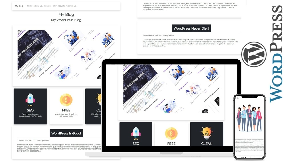Wordpress themes template with clean design concept + SEO injection.